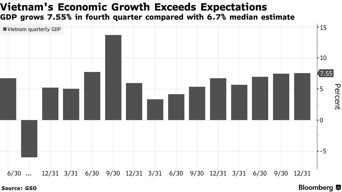 越南,亚洲的增长明星,其经济在第四季度超出了所有预期,可能面临价格压力和对总理8%扩张目标的挑战,受到特朗普政府政策的影响。