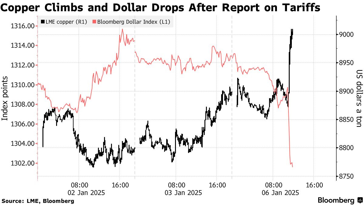 铜在伦敦上涨超过1%,此前《华盛顿邮报》报道美国当选总统唐纳德·特朗普的助手正在探索将适用于每个国家但仅涵盖关键商品进口的关税计划。