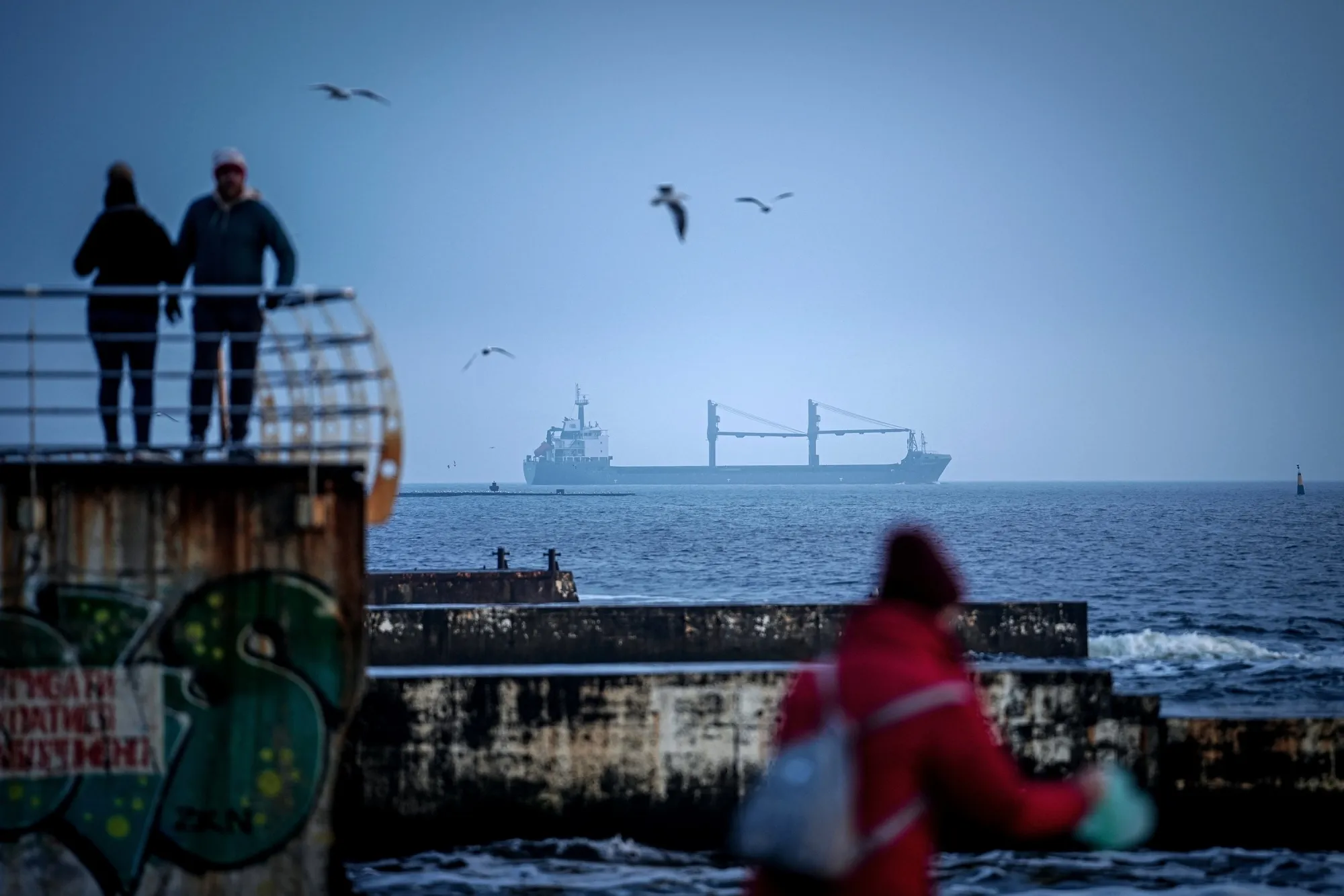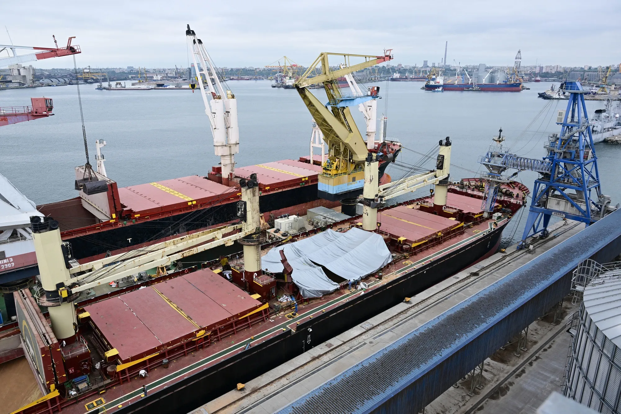 一艘货船离开黑海的敖德萨港,这是商品的重要通道。