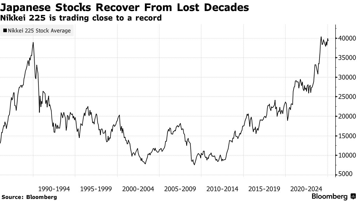 然而,随着日本股票接近创纪录的高点,风险依然存在。日本的两个基准股指在8月5日因中央银行在17年内第二次加息而下跌了12%,这使投资者情绪降温。
