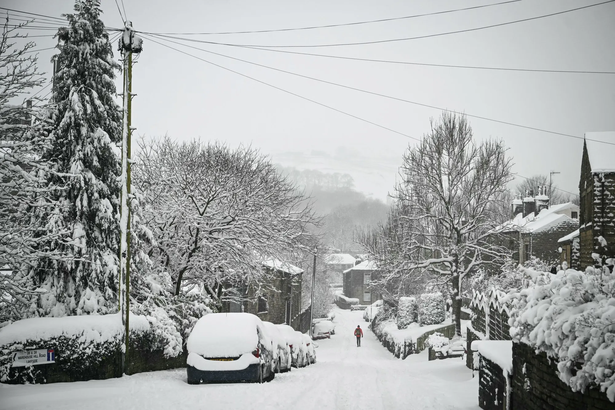 1月5日,英国马尔斯登的街道被雪覆盖。