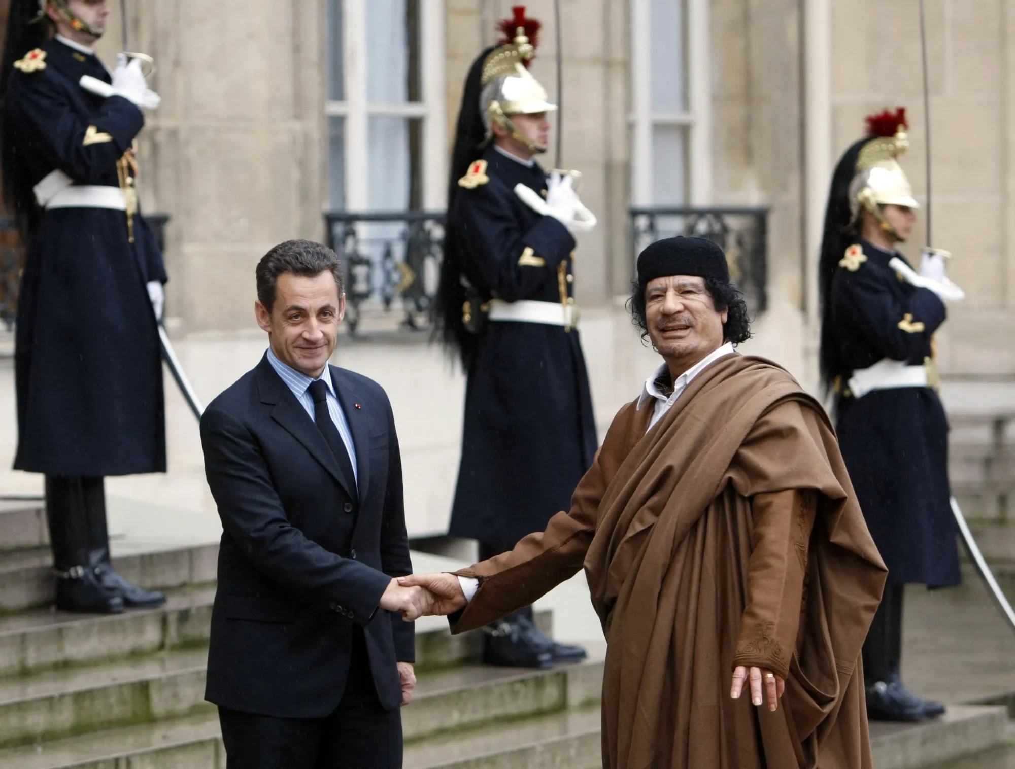 尼古拉·萨科齐和穆阿迈尔·卡扎菲在2007年的巴黎。