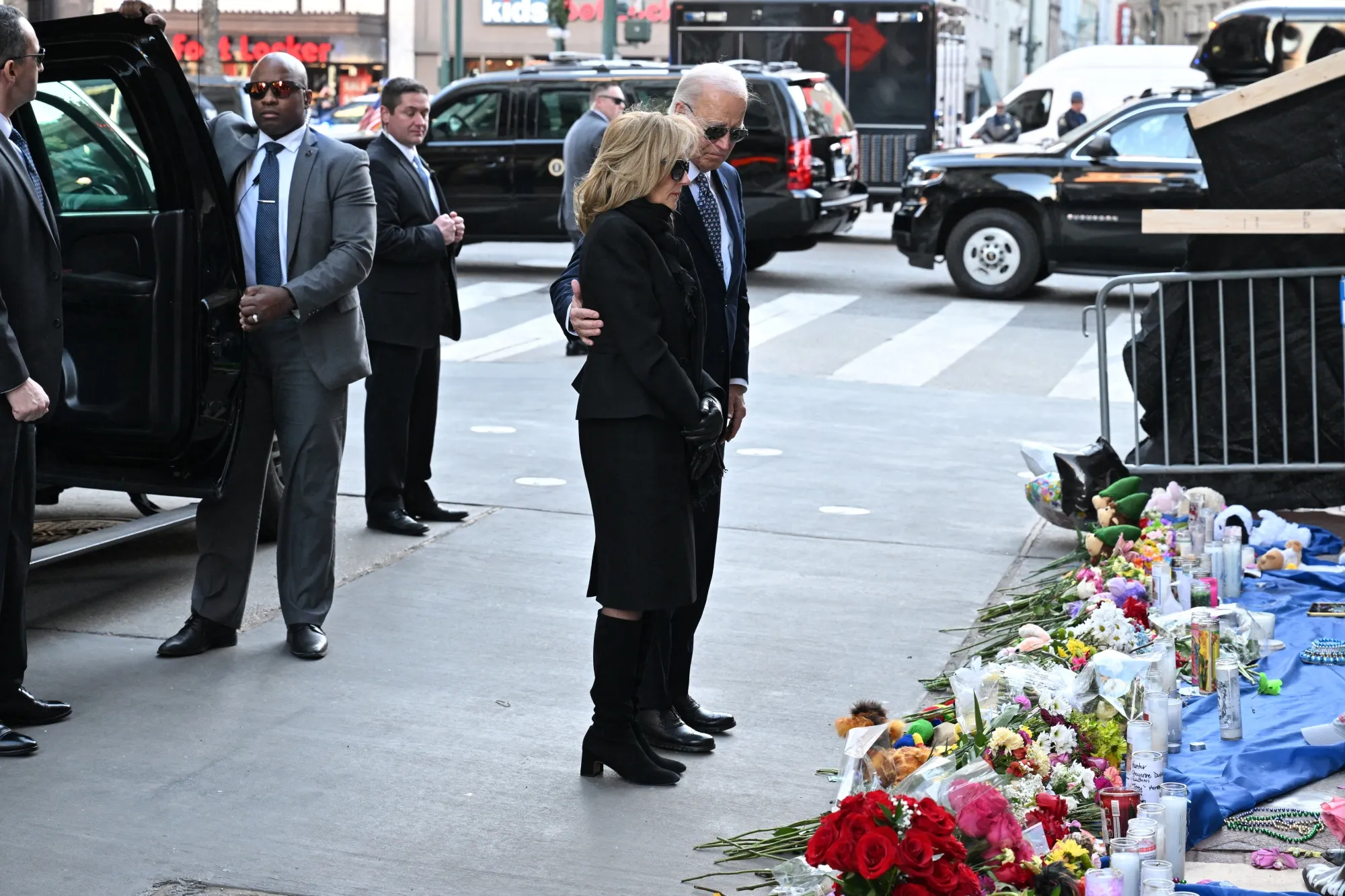 总统陪同第一夫人吉尔·拜登出席,她与遇难者的亲属以及其他受到袭击影响的人进行了交谈,这次袭击造成14人死亡,30多人受伤,发生在法国区的中心地带。