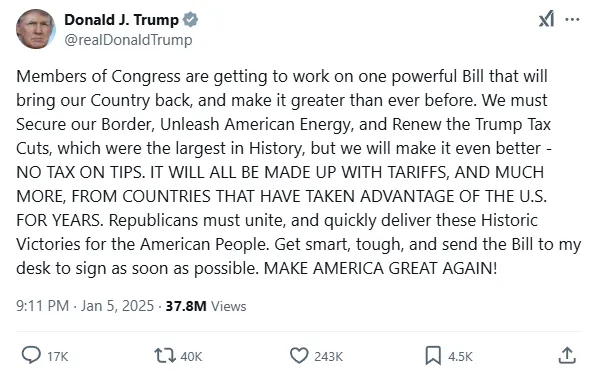 这确实是一个明确的意图声明,但它也提醒人们,新总统的权力并不是无限的,宪法的保护措施依然存在。事实上,麦格理的全球战略家维克托·施韦茨建议,明年更多的是评估这些保护措施的强度,而不是对特朗普的首次行动进行猜测。总统当选人在众议院的多数为两票,远未达到可以阻止冗长辩论的参议院多数。这解释了为什么他将所有内容捆绑成“一项强有力的法案”以通过预算调解程序,这可以避免冗长辩论。即使特朗普目前的政治力量很大,推动一项庞大且笨重的法案通过国会也不会容易或迅速。