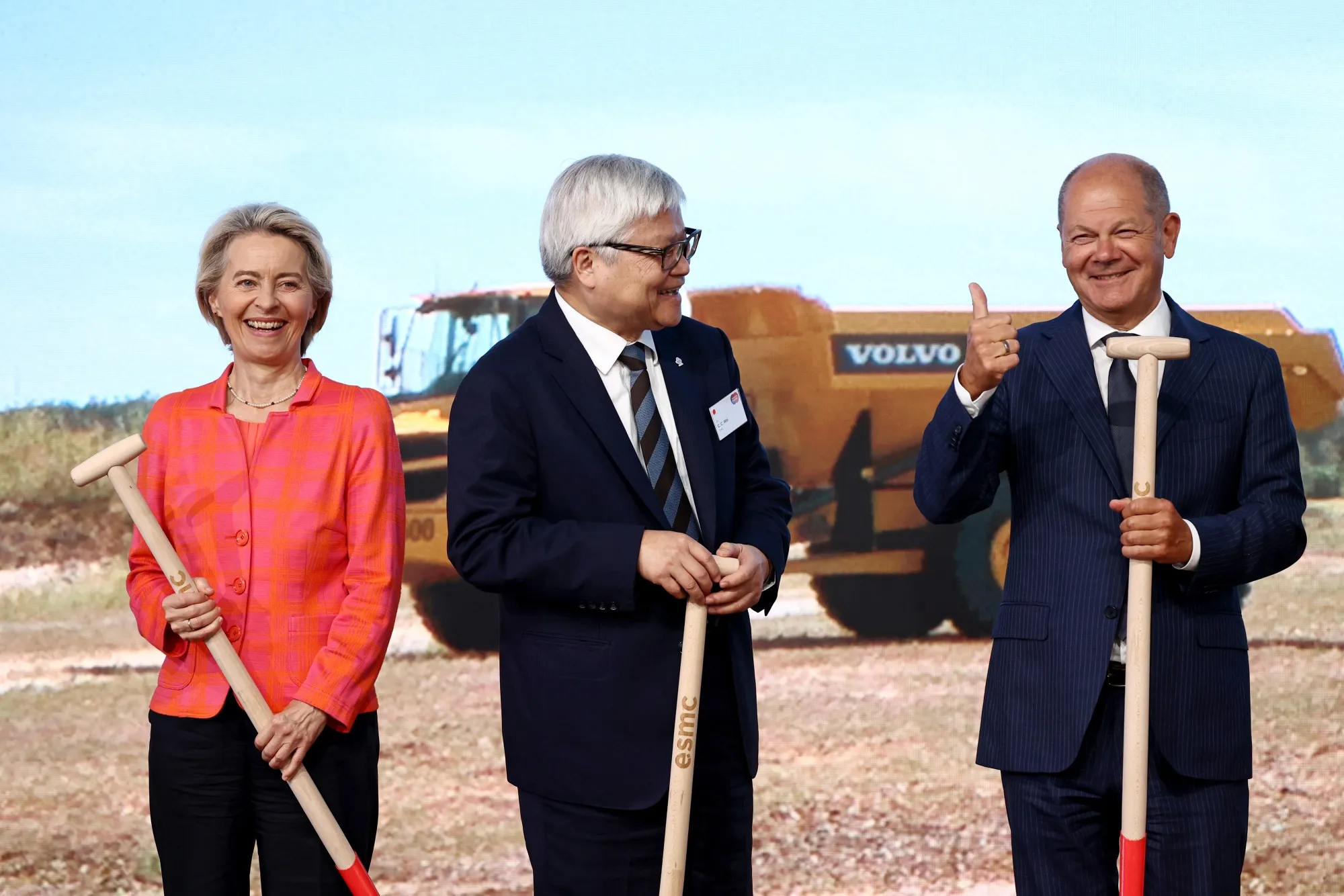 正是在德累斯顿附近的这块土地上,肖尔茨总理手握铲子,为台湾半导体制造公司的一座大型工厂奠基,在一个炎热的日子里,时间是八月。他急于率先开始挖掘,身旁还有欧洲委员会主席乌尔苏拉·冯·德莱恩和其他贵宾。