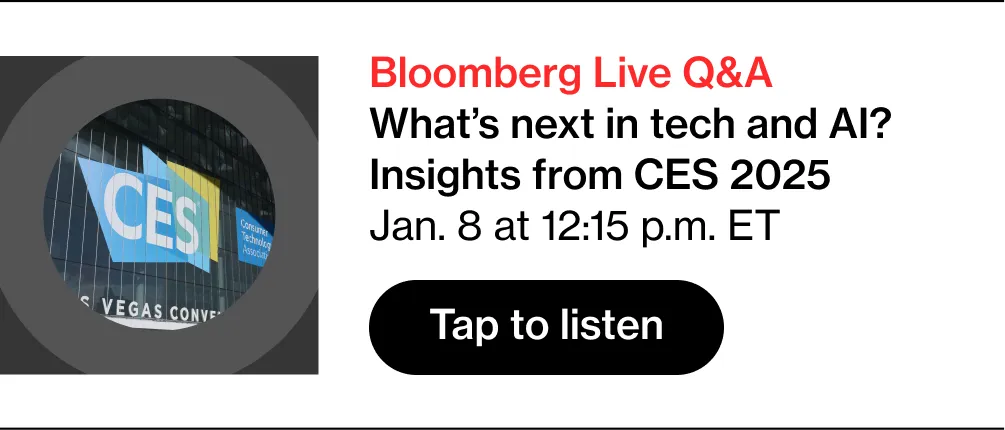 加入我的同事爱德华·卢德洛、马克·古尔曼、希林·加法里和达娜·沃尔曼,在周三东部时间下午12:15的CES直播问答中。他们将讨论我们在展会上看到的创新。任何人都可以在这里收听,我们鼓励彭博社的订阅者向我们的团队提问关于科技未来的问题。### 值得关注