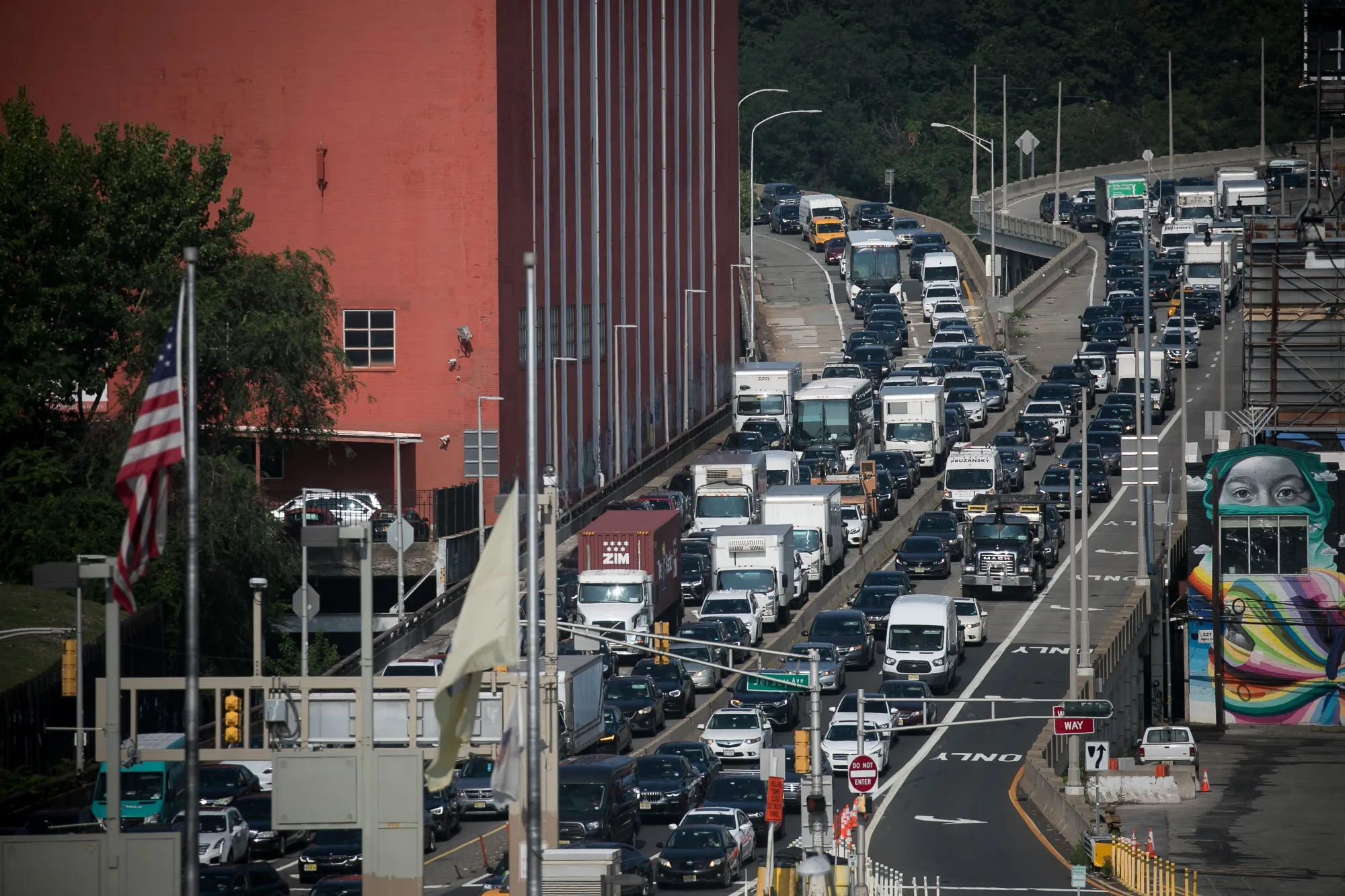 2023年,曼哈顿方向的交通在新泽西州泽西市的霍兰隧道附近拥堵。摄影师:迈克尔·纳格尔/彭博社与此同时,纽约刚刚完成了一场疯狂的冲刺,以 在曼哈顿部分地区实施拥堵定价,并且州立法机构也在考虑一项法案, 旨在到2050年将车辆行驶里程减少20%。