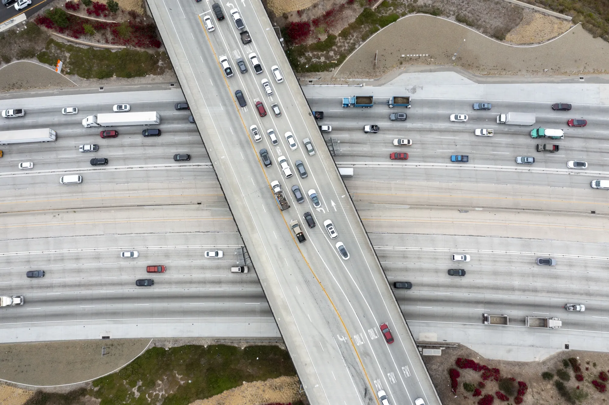 加利福尼亚州科罗纳市91号高速公路上的交通鸟瞰图。摄影师:Allen J. Schaben/洛杉矶时报通过Getty Images该州随后在2013年通过立法,要求各机构在交通项目的环境审查过程中使用车辆行驶里程作为指标,规定任何额外里程的影响必须通过快速公交服务、对骑行和步行的投资,或在公共交通附近增加可负担住房来抵消,Ward-Waller说。“这大大增加了项目的成本,并且有可能在实际中抑制高速公路扩建。”