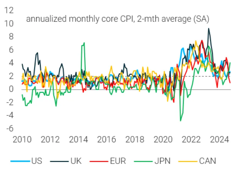 发达经济体的中央银行表示,他们计划在今年继续降低利率,尽管在许多情况下,通货膨胀尚未回落到2%的目标——实际上表明他们对接近3%的利率感到满意,TS Lombard的达里奥·帕金斯(Dario Perkins)表示。