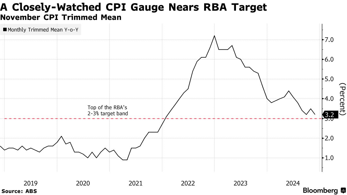 澳大利亚关键通胀指标在11月更接近澳大利亚储备银行目标 - 彭博社