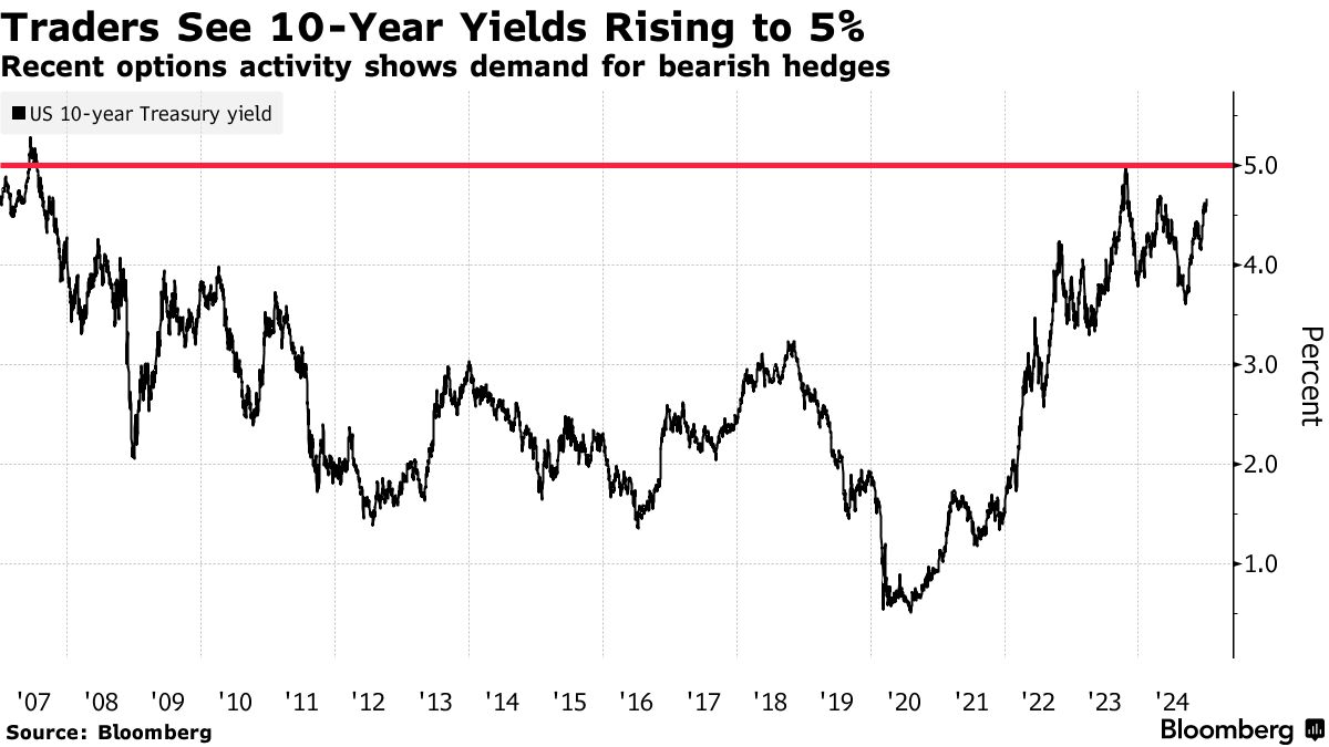 债券市场目标为5%的美国10年期收益率,特朗普宣誓就职临近 - 彭博社