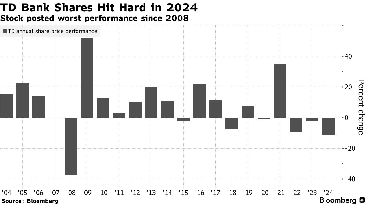 多伦多道明银行的股票在2024年遭受重创,创下自2008年以来的最差表现,但几位分析师认为现在有复苏的空间,因为美国的洗钱调查已经结束。根据彭博社汇编的数据,该股票有七个买入评级,六个持有评级和两个卖出评级。