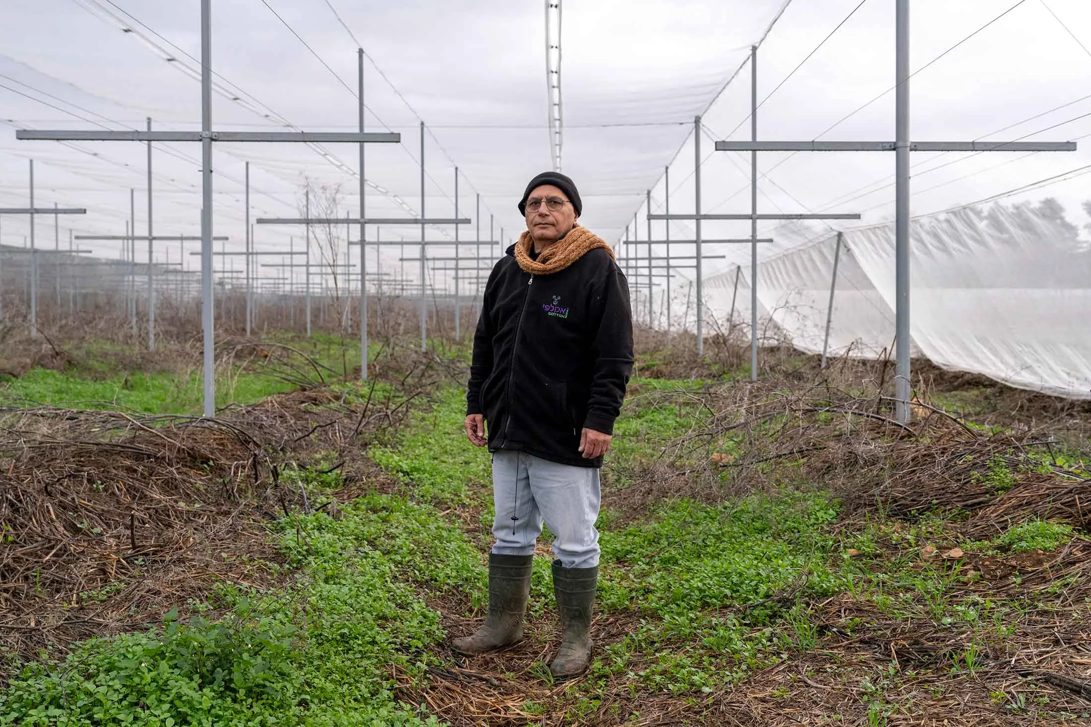 拉米·拉内尔在南戈兰高地的基布兹田地里。摄影师:丹尼尔·罗利德(Daniel Rolider)为《彭博商业周刊》拍摄以色列农民还有其他事情需要担心。在战争开始时,外籍工人纷纷逃离,以色列政府禁止大多数巴勒斯坦人入境,造成政府所描述的自1948年以色列建国以来最严重的农业工人短缺。战争影响最严重地区的农民需要军方的许可才能进入他们的田地,并在此过程中面临重大危险。铁穹导弹防御系统仅在弹头朝向人口密集地区时才会启动,因此农业地区面临火箭、迫击炮、无人机和反坦克火力的威胁,几乎没有任何警告。