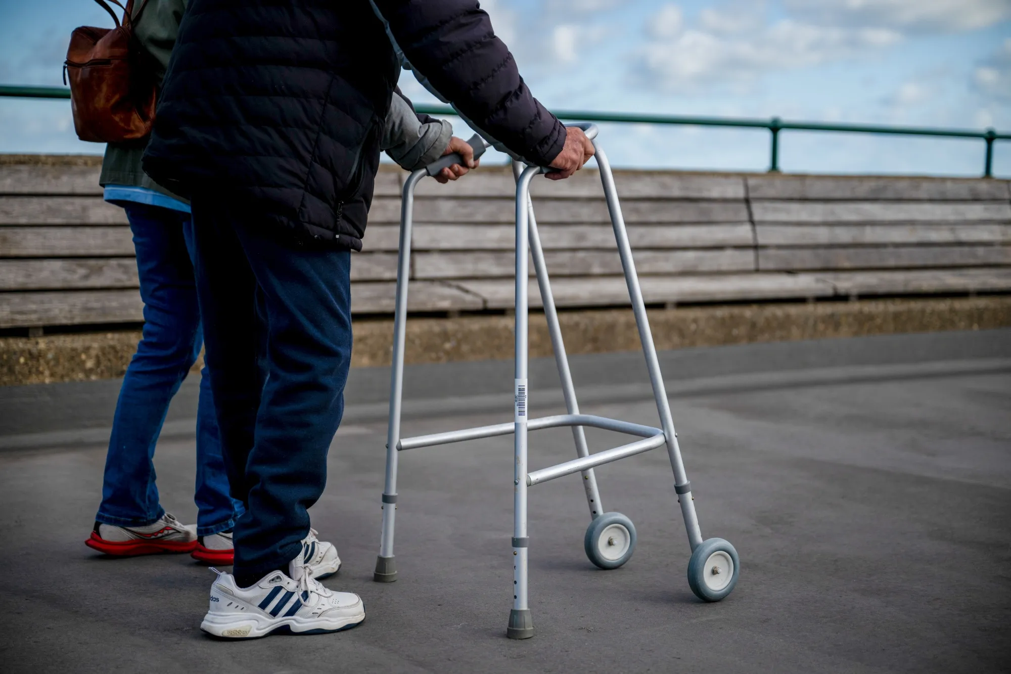 一个人使用助行器在英国迪尔的码头上行走。摄影师:克里斯·J·拉特克利夫/彭博社一项研究发现,英国的健康问题始于紧缩时代,使其经济在新冠疫情面前更加脆弱。