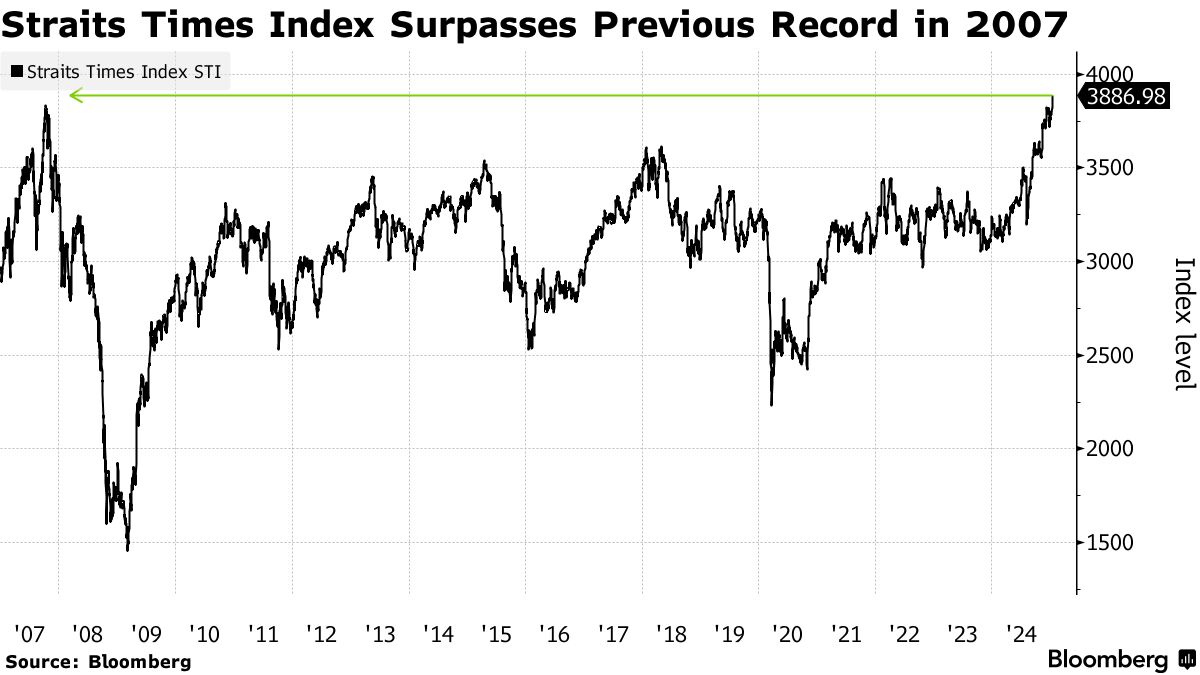 新加坡股票基准指数创下历史新高,银行股上涨 - 彭博社