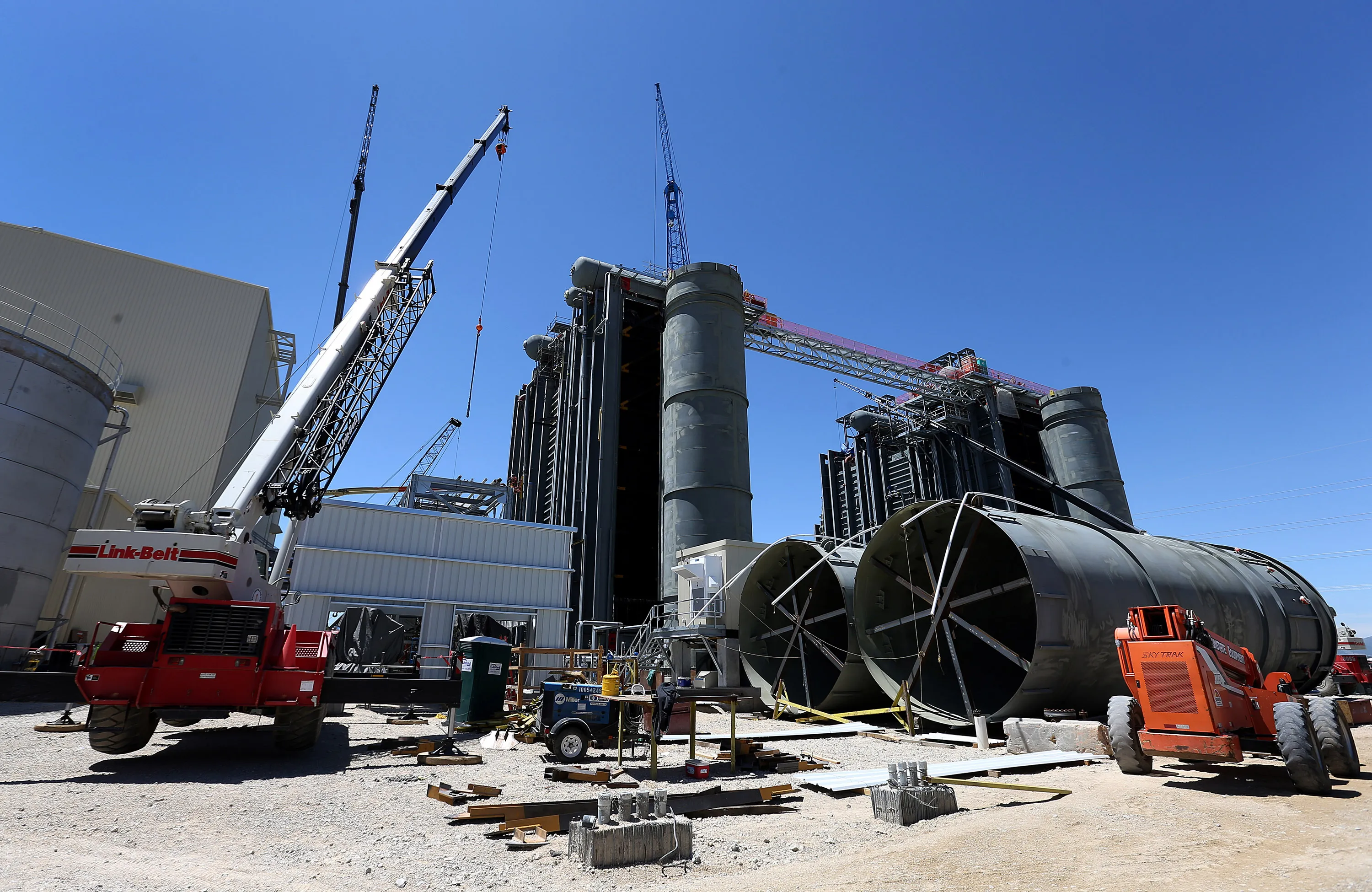 2013年在犹他州温泉市建设中的PacifiCorp Lake Side 2天然气发电厂。摄影师:彭博社通货膨胀推高了涡轮机、劳动力和建筑的费用。根据最近西门子能源公司的估计,200兆瓦涡轮机的等待时间也延长到了大约三年。GE Vernova公司正在预订2028年及以后的订单。