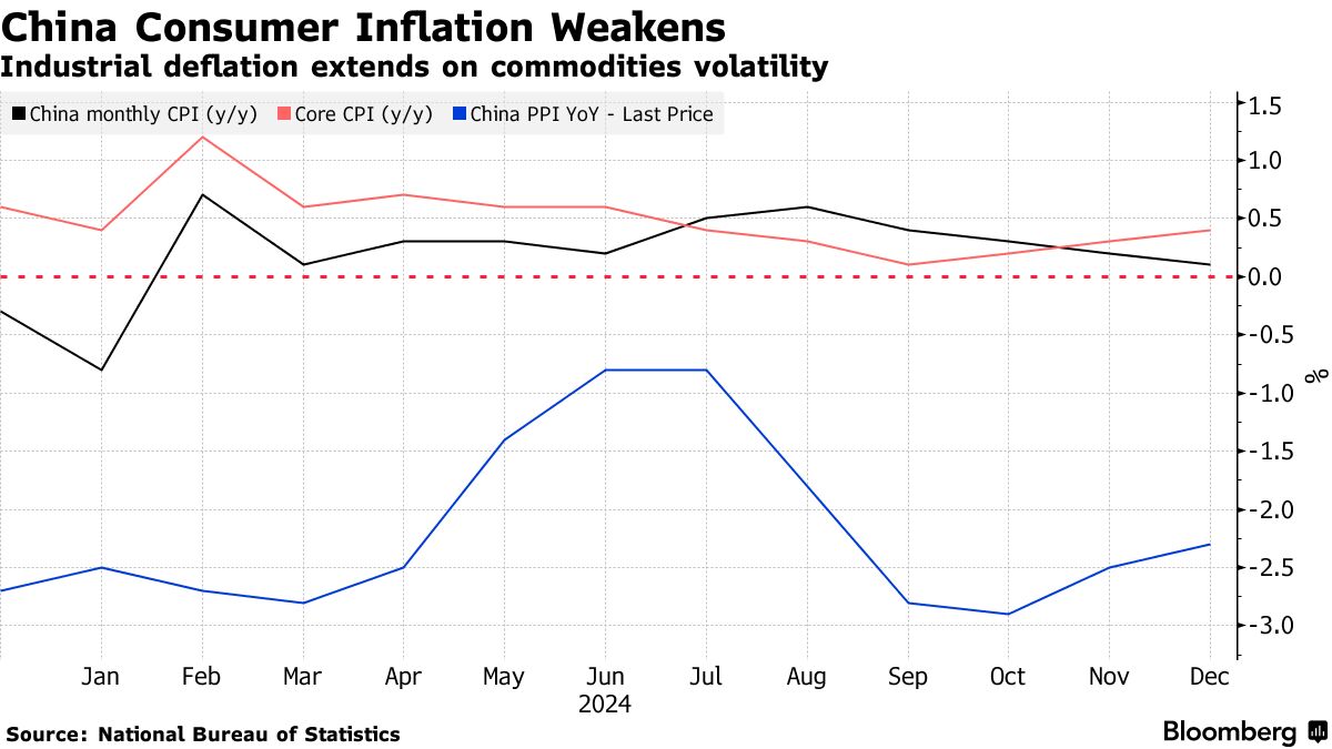 摄影师:沈其来/彭博社中国的消费者通胀进一步减弱,连续第四个月放缓,这对政府消除通缩和通过经济刺激复苏需求的努力造成了挫折。