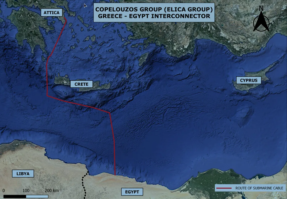 该连接将由4条电缆组成,跨越近1000公里(620英里)的东地中海,旨在将来自科佩卢佐斯将在埃及开发的9.5吉瓦风能和太阳能项目组合的电力输送过来,卡里达斯表示。