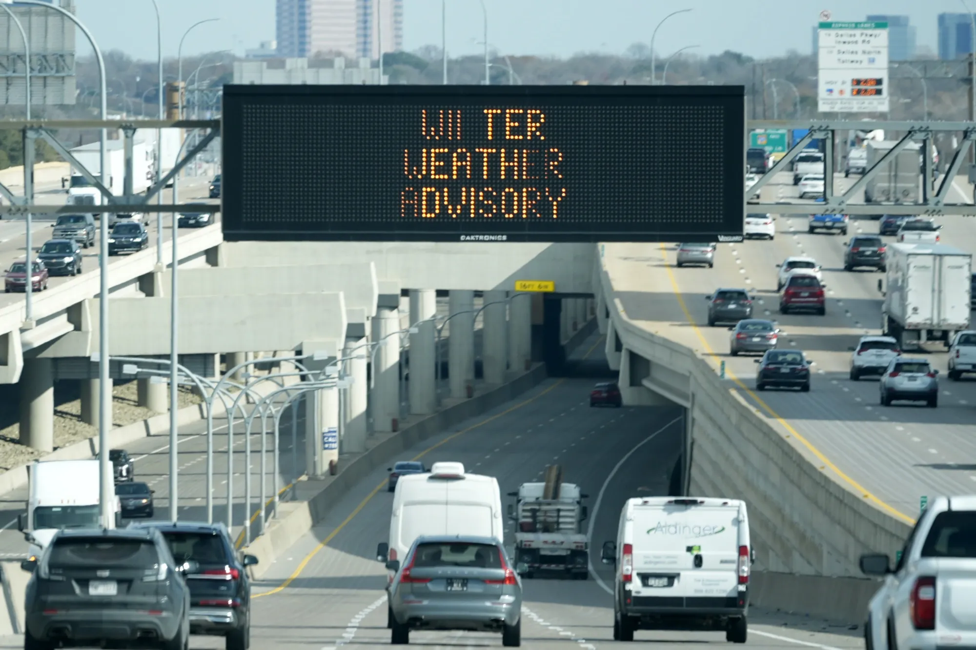 摄影师:LM Otero/AP照片一场给达拉斯带来降雪并威胁美国南部的冰冻雨和雨夹雪的冬季风暴已导致超过2400个航班停飞,并增加了该地区停电的风险。