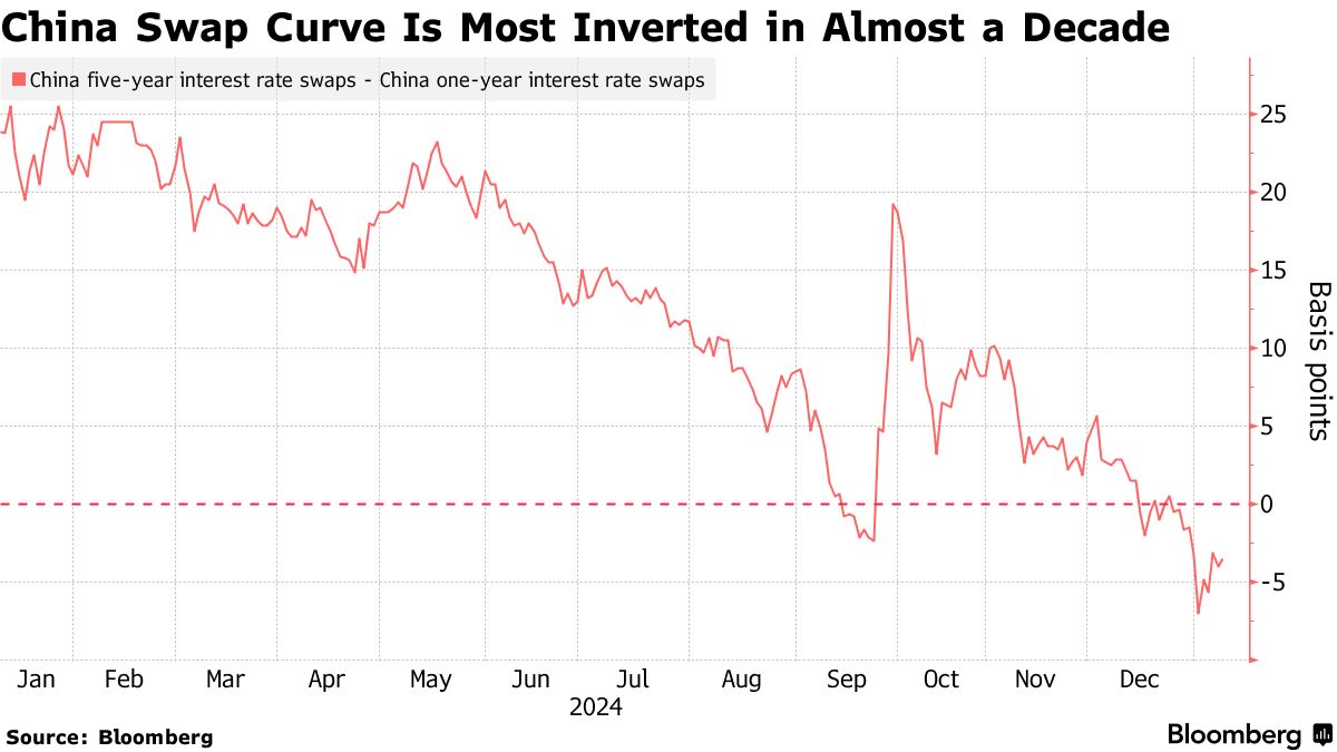 该国的五年期利率互换,这是一种流行的对冲工具,上个月首次跌破其一年期同类产品。根据彭博社汇编的数据,上周这一折扣加深至近十年来的最高水平。