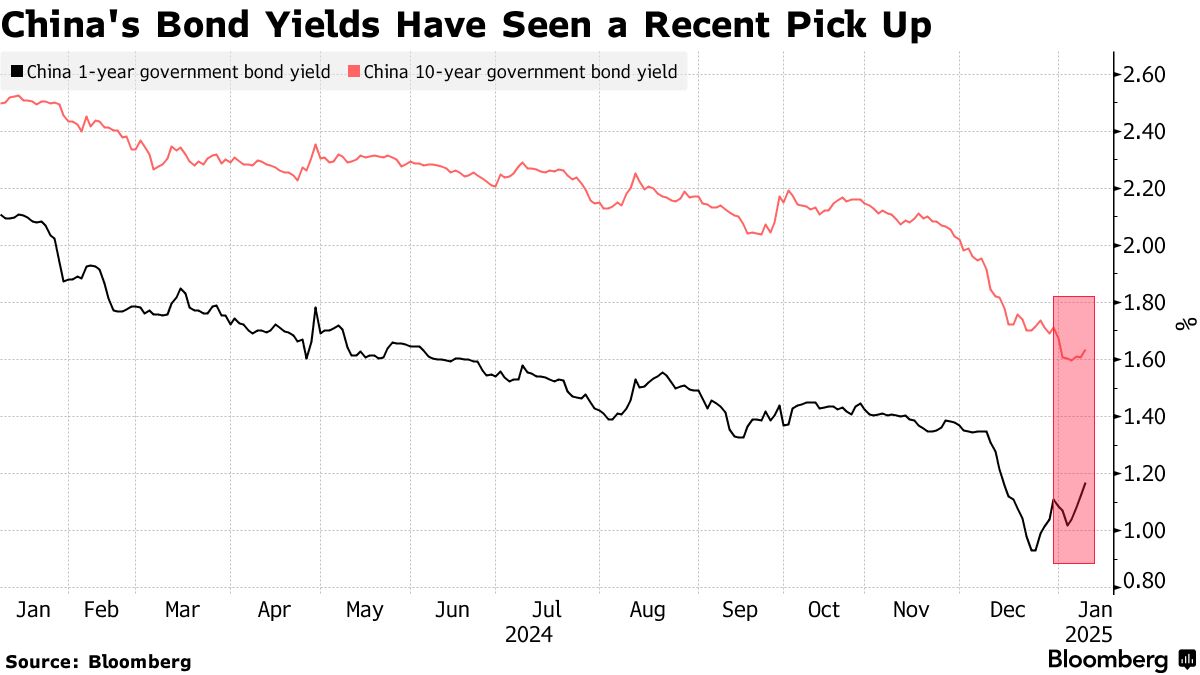 一家人民银行支持的报纸引用了一位经济学家的话,称市场不应过度解读货币宽松的范围,并应避免进行激进的押注。中国的一年期收益率本周上升超过15个基点,达到1.17%,而10年期利率则从创纪录的低点反弹。