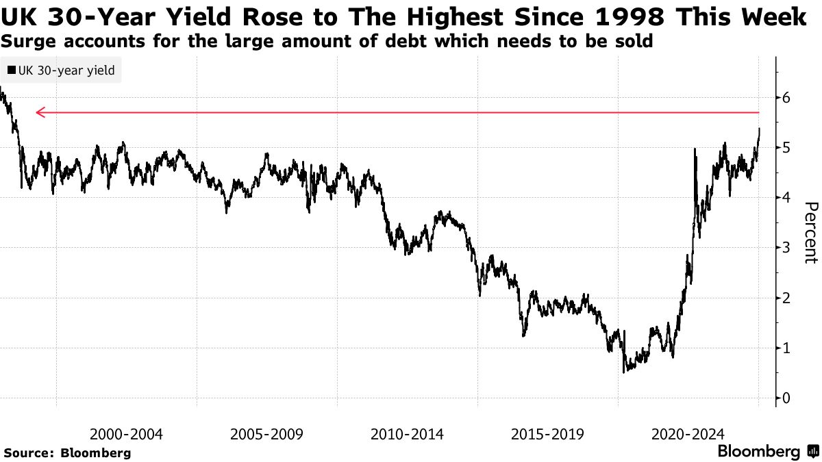 在周五,因一份出人意料强劲的美国就业报告,国债和英镑再次下跌。尽管最新的走势与同行一致,但这发生在英国资产经历了一场残酷的抛售之后,导致长期借贷成本达到了1998年以来的水平。