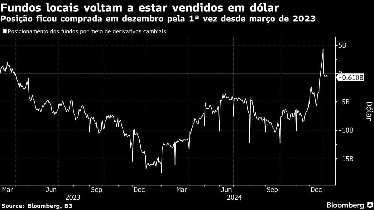 根据彭博社编制的B3外汇衍生品数据,国内基金在1月9日星期四收盘时持有6.1亿美元的美元空头头寸——这在美元贬值时获利。该数字表明,自2024年底以来,管理者在衍生品中出售了约50亿美元。