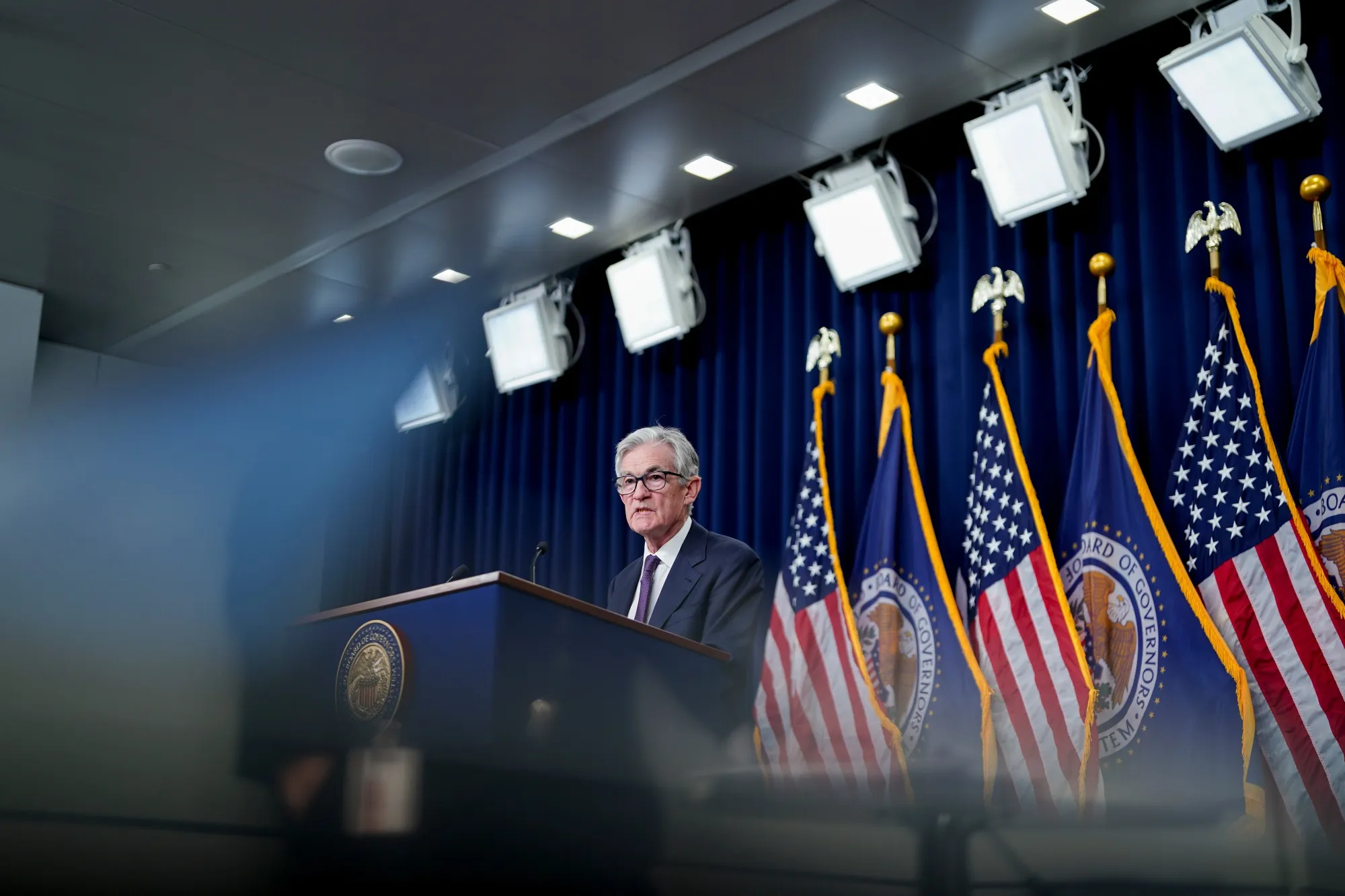 美国联邦储备委员会主席杰罗姆·鲍威尔在新闻发布会上发言。