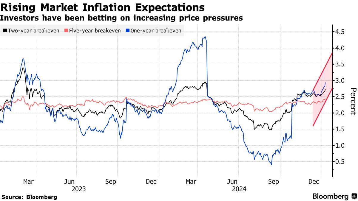 在动荡中,风险资产的受害者越来越多,这被称为特朗普交易——其看涨的一面预见到减税和放松管制将推动股票上涨,即使在过去两年中已经获得了巨大的收益。相反,投资者正在应对他们不想要的交易部分:由于担心不受控制的支出和贸易关税将助长通胀,债券收益率飙升。