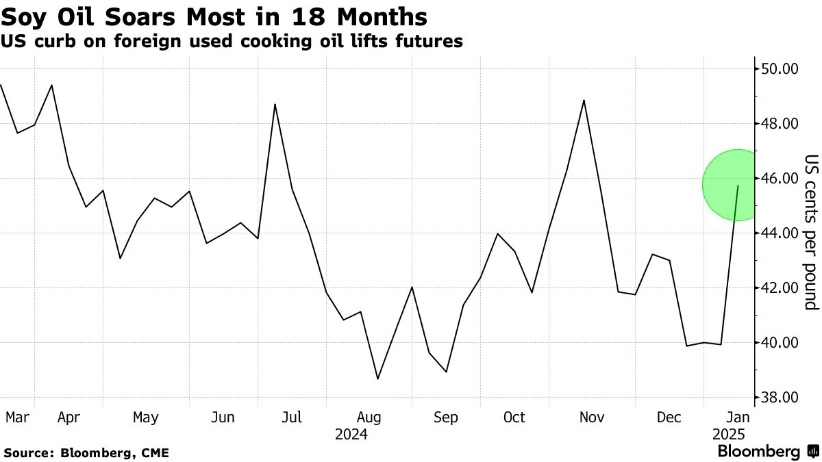 此举是在来自中国的供应以低于当地生产的大豆油的价格涌入美国市场之后做出的。这个决定对美国农民来说是一个胜利,他们一直寄希望于以大豆为主的生物燃料如可再生柴油的繁荣来销售他们的农作物。