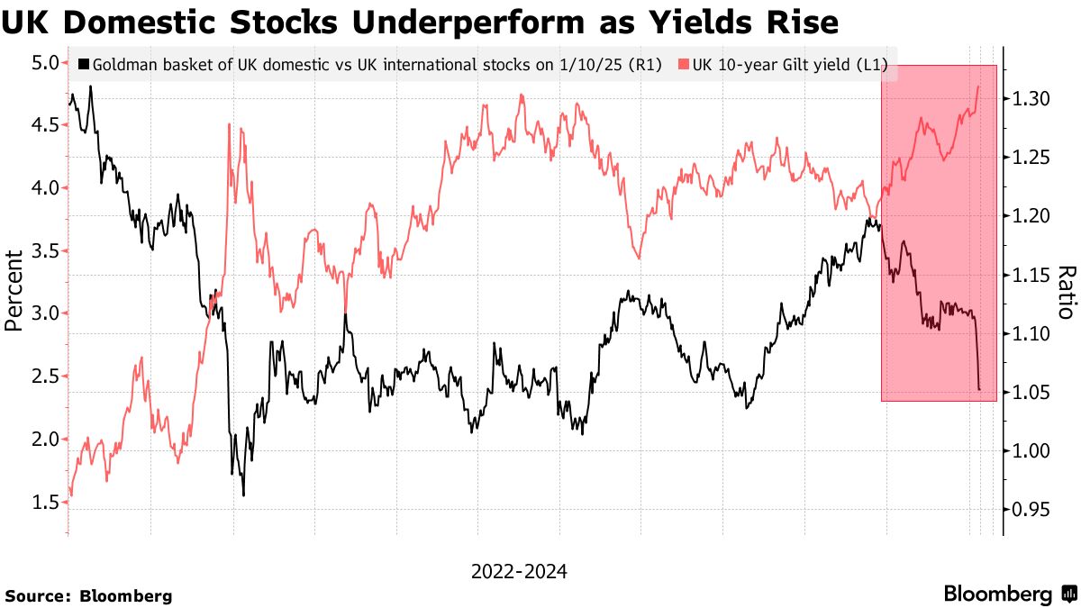 根据巴克莱策略师的说法,英国国内股票的前景现在更加模糊。“在2024年对英国国内市场相对乐观之后,我们看到2025年面临更多挑战,并建议目前对此领域保持谨慎,”由埃马纽埃尔·考领导的团队在一份报告中写道。