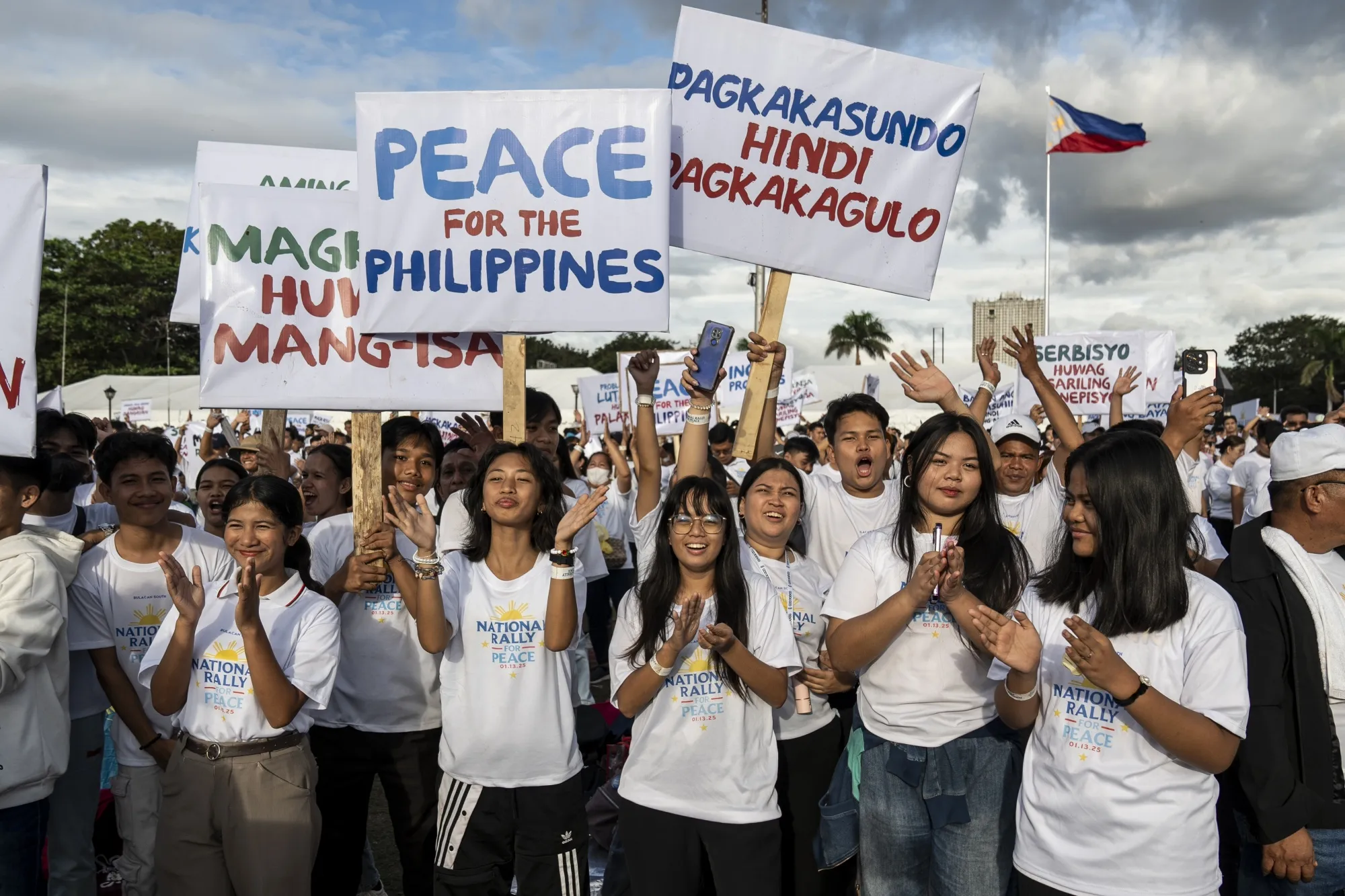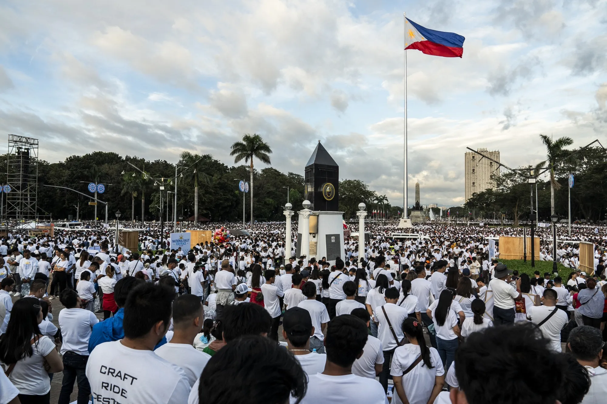 基督教教会的成员们穿着白衬衫,在杜特尔与总统费迪南德·马科斯之间日益加深的争执中,于周一举行了“和平集会”。根据警方的说法,近160万人涌入马尼拉市历史悠久的基里诺大看台及附近街道。