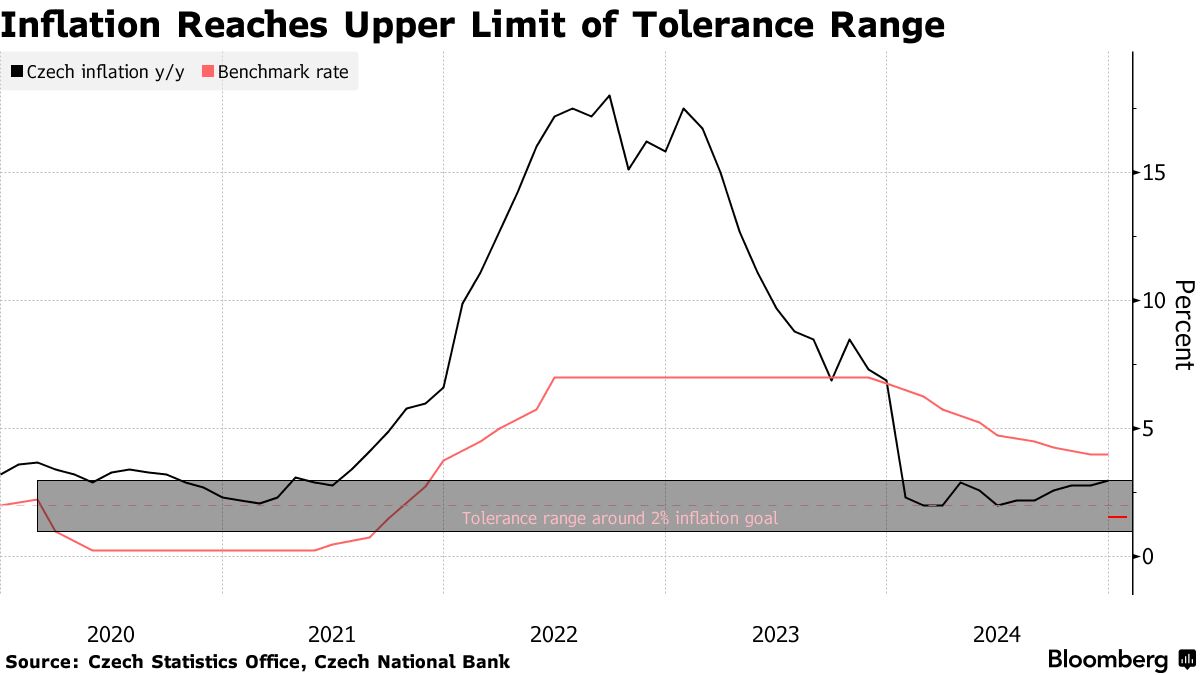 捷克通胀加速,但低于预期,因利率削减暂停 - 彭博社