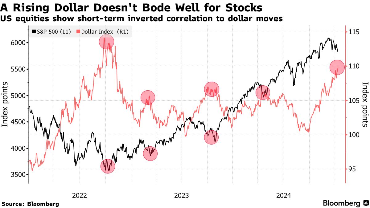 尽管如此,威尔逊表示,标准普尔500指数整体的表现可能会保持韧性“只要强劲的国内增长是美元上涨的主要驱动力。”这位策略师放弃了他在2024年中期长期持有的对股票的看跌观点。