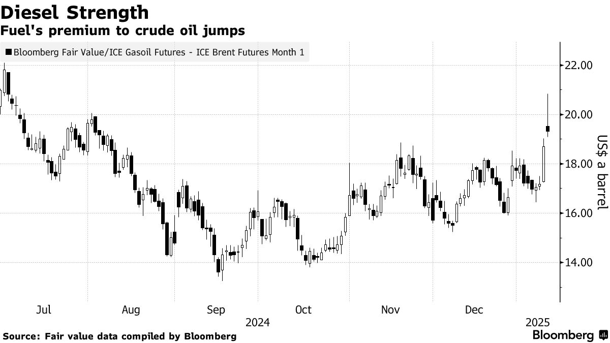 除了最新的制裁,价格还受到美国和欧洲的寒冷天气的支持,这可能会增加对取暖油的需求,而取暖油是整体柴油市场的重要组成部分。