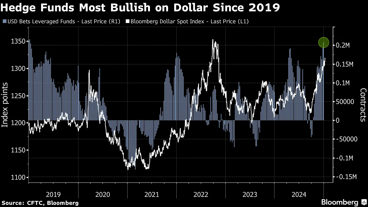 包括对冲基金在内的投资者似乎支持对美元的乐观观点,数据显示,美元的乐观头寸现在达到了自2019年1月以来的最高水平,这些数据由商品期货交易委员会提供,并由彭博社汇编。
