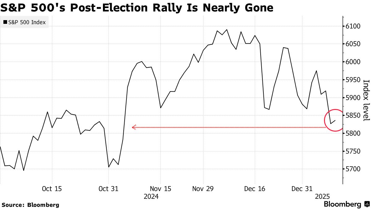 股票接近抹去特朗普效应,因利率担忧加剧 - 彭博社