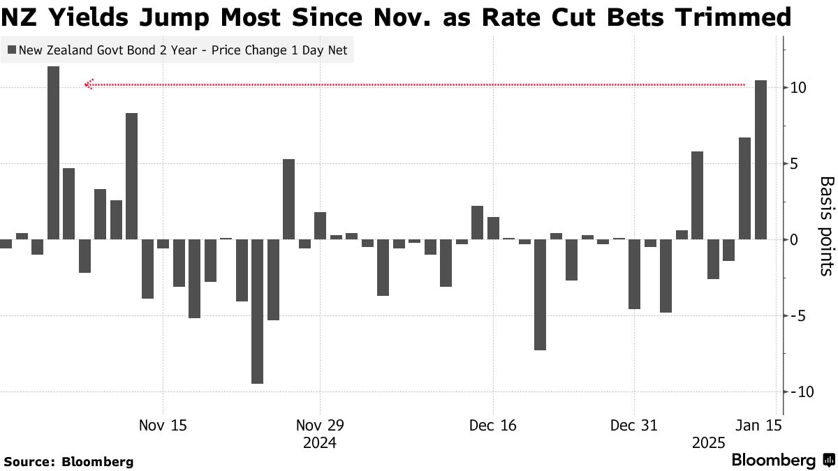 新西兰债券两个月来首次大幅下跌,因市场削减了对新西兰储备银行降息的预期 - 彭博社