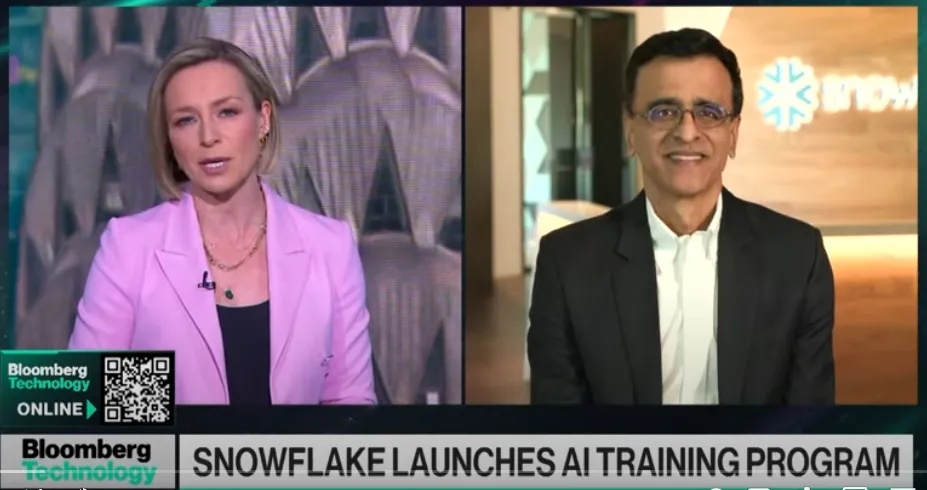 Snowflake首席执行官Sridhar Ramaswamy加入 彭博科技 讨论这家软件公司培训员工使用人工智能的计划。### 来自彭博社的更多信息