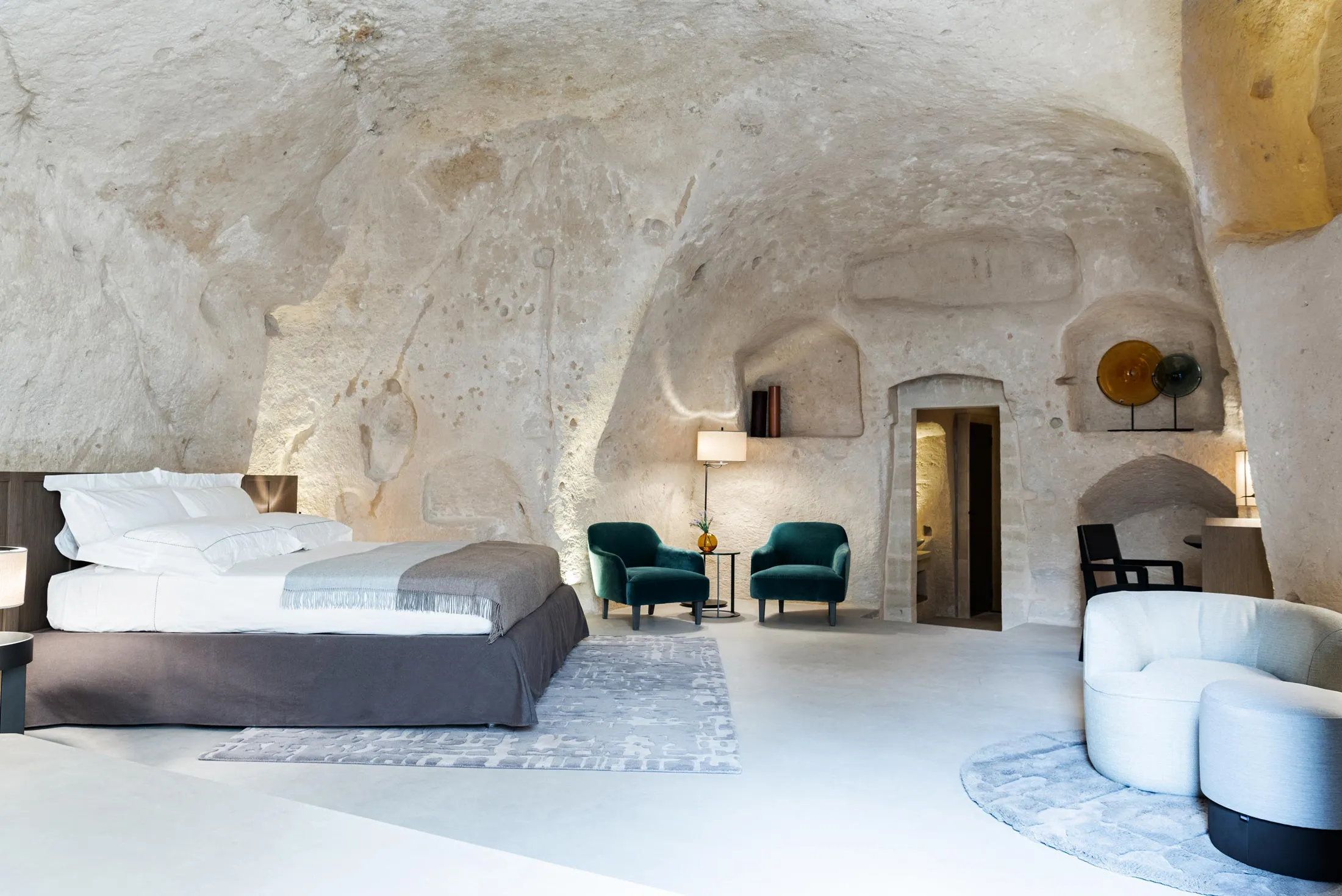 在维特拉雕刻的岩石套房。来源:维特拉马泰拉维特拉马泰拉时间: 三月地点: 意大利马泰拉由于其萨西,马泰拉一直是一个酷炫的、为人所知的日间旅行地点*—岩石住宅挖掘在洞穴中,其中一些可以追溯到旧石器时代——但由于缺乏住宿选择,很少有游客过夜。随着维特拉的到来,这种情况即将改变,维特拉是Relais & Châteaux的新成员。这家拥有23间客房的酒店雕刻在萨西本身,给客人提供了近距离欣赏这些著名建筑的机会,并包括一个建在岩石中的泳池的水疗区。它是探索城镇石建筑和蜿蜒的鹅卵石街道的理想基地,其中一些在2021年詹姆斯·邦德电影《无暇赴死》* 中出现过。房价待公布。