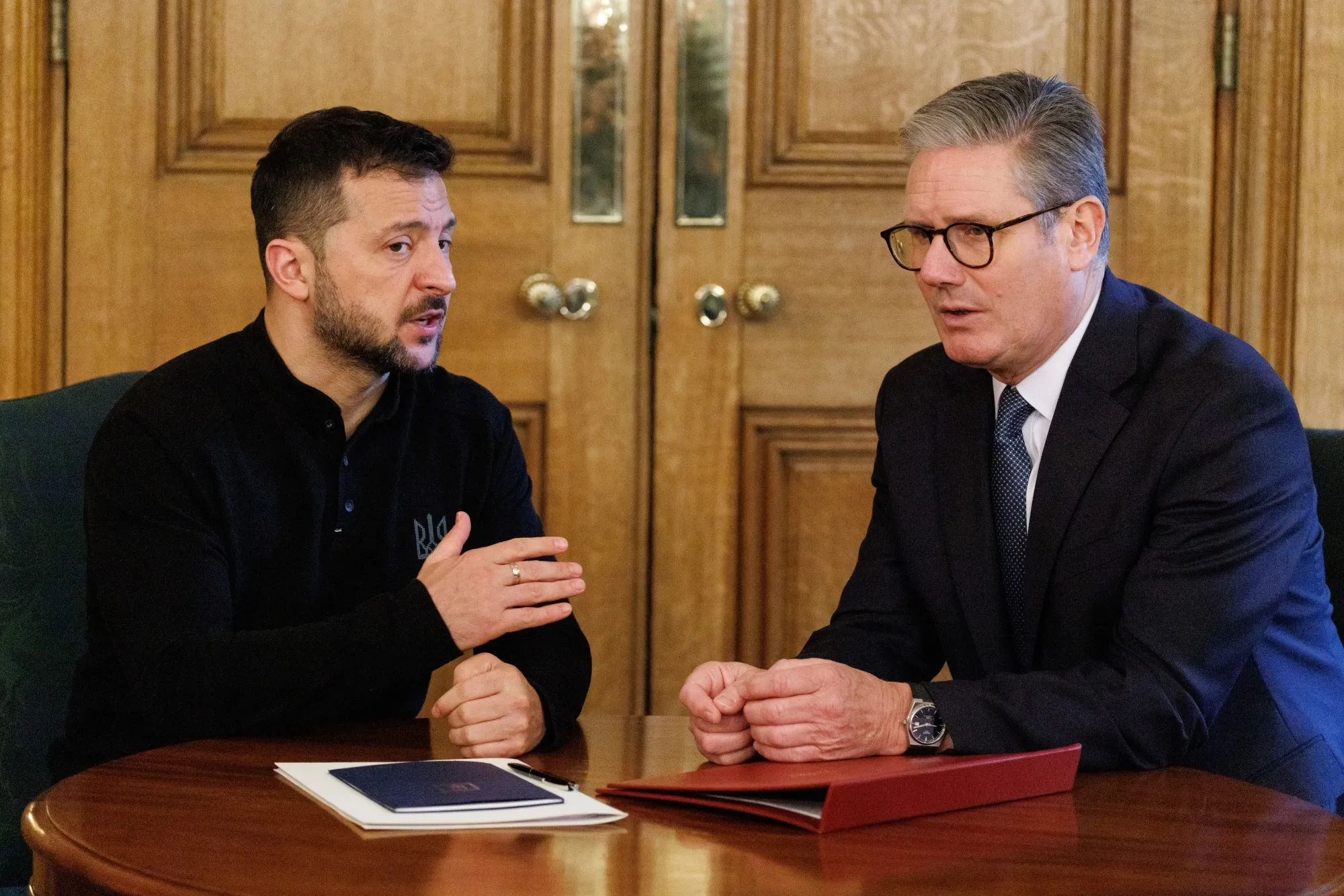 乌克兰总统弗拉基米尔·泽连斯基和英国首相基尔·斯塔默。摄影师:托尔加·阿克门/EPA/彭博社自从俄罗斯全面入侵以来,英国获得了作为乌克兰积极支持者之一的声誉。但在首相基尔·斯塔默的任期内,泽连斯基总统的政府及其支持者对英国更加谨慎的做法越来越感到担忧。