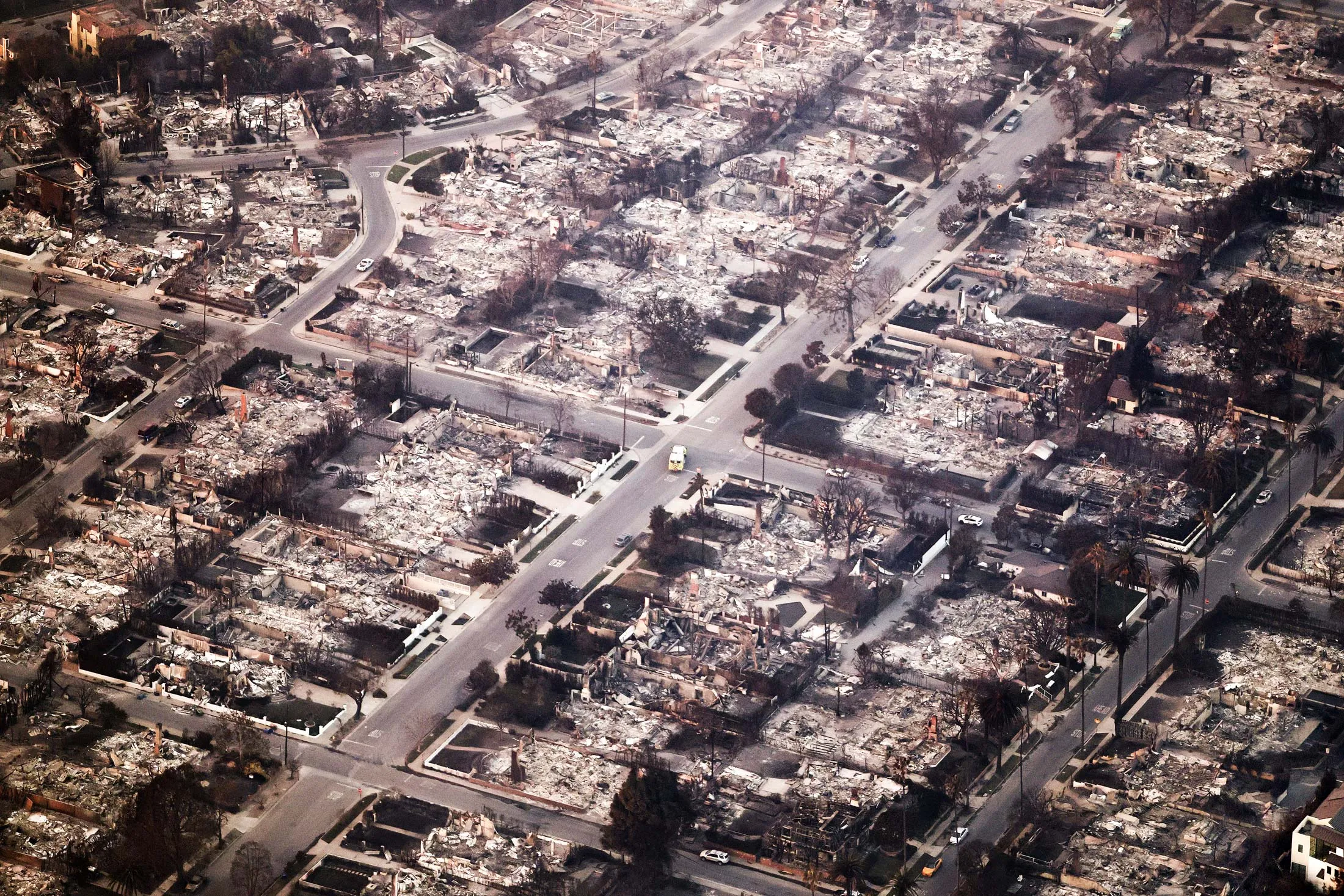 来自帕利塞德火灾的损害。2023年联邦储备银行的一项研究发现,加利福尼亚州的火灾后索赔平均被低估了40%。摄影师:Josh Edelson/Getty Images### 房主能否像以前一样重建?