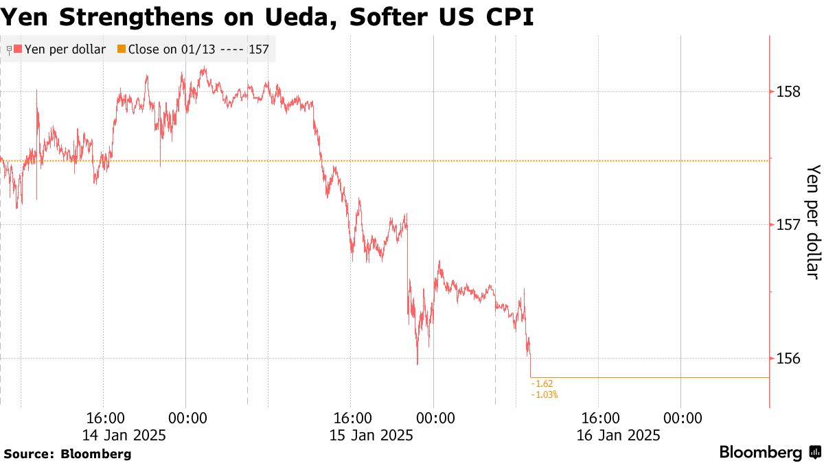 官员们的观点在很大程度上支持市场对本月加息的高预期,此前行长上田和夫和他的副手日野良三本周表示,他们将在1月的会议上决定是否需要加息。日元在周四对美元连续两天上涨,达到自12月中旬以来的最高水平。