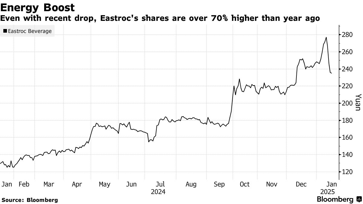 东鹏饮料在上海交易的股票在过去12个月中上涨了约76%,即使考虑到本周的下滑。该公司的市值为1220亿元人民币(167亿美元)。
