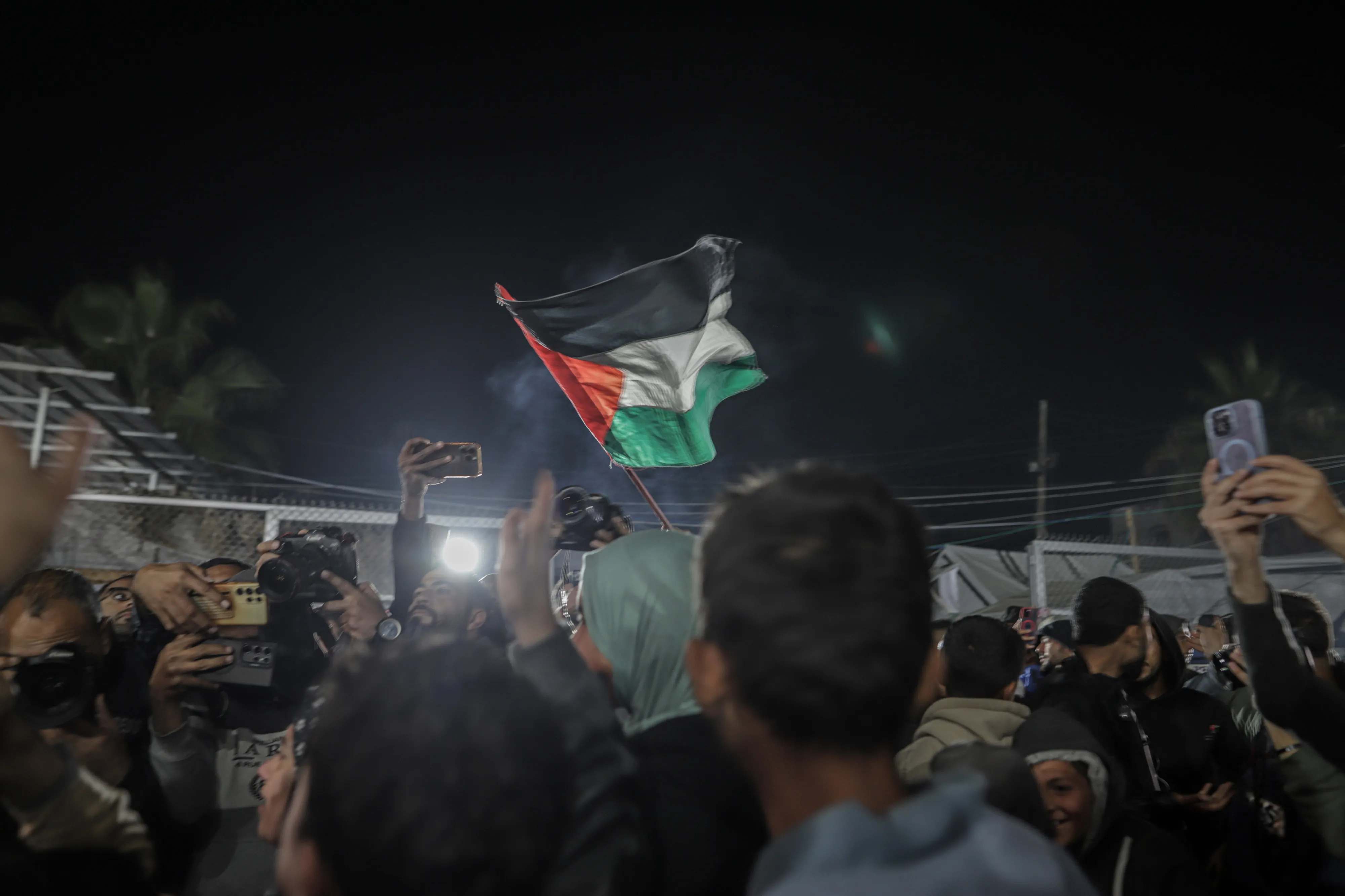 巴勒斯坦人在1月15日加沙宣布停火协议后庆祝。