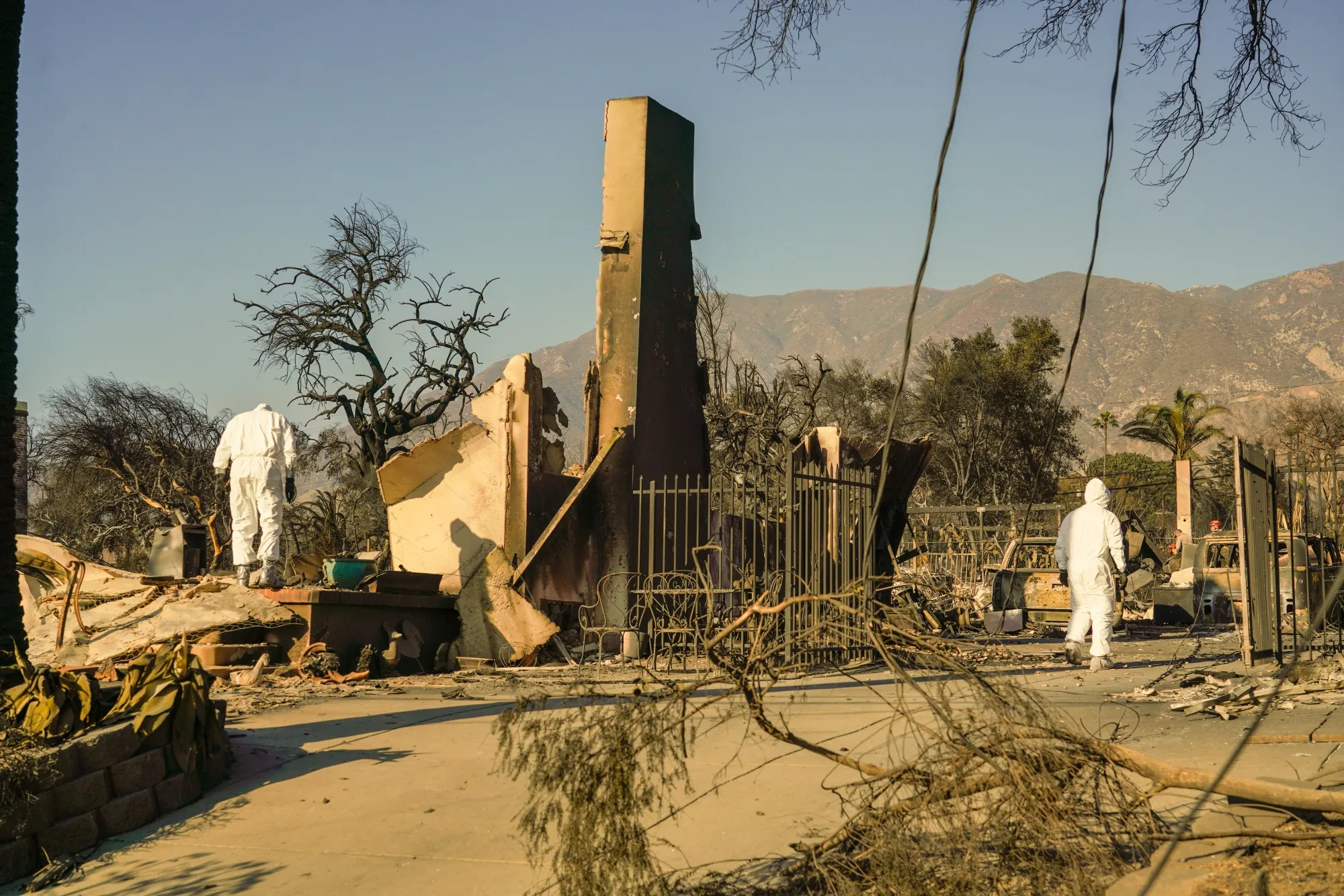 搜救队在加利福尼亚州阿尔塔迪纳的伊顿火灾后检查一处财产。摄影师:凯尔·格里洛特/彭博社阅读更多:为什么洛杉矶火灾如此毁灭性:快速了解