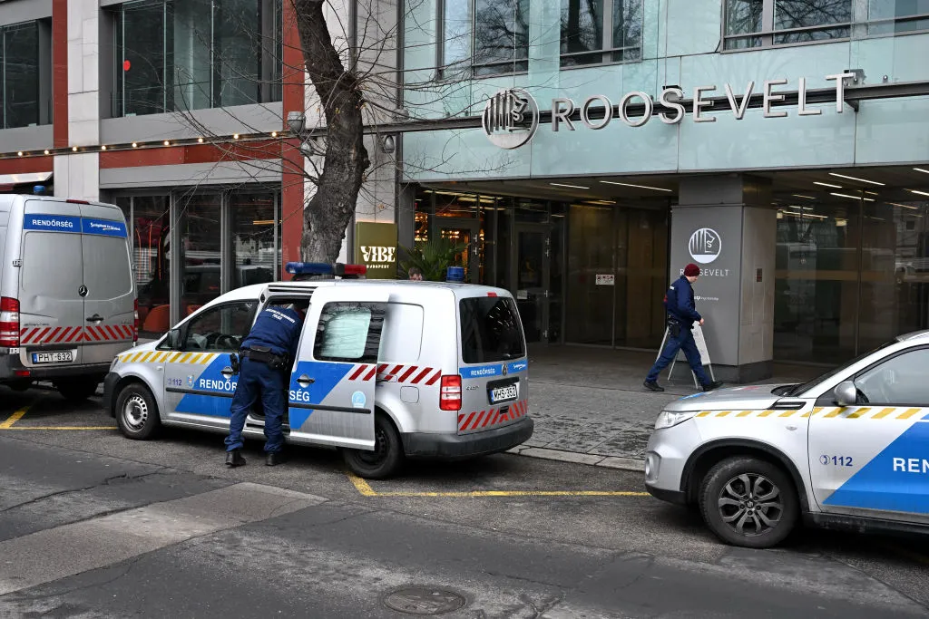 匈牙利警方在布达佩斯的一个建筑物前,该建筑物是诚信局的所在地,时间是1月16日。