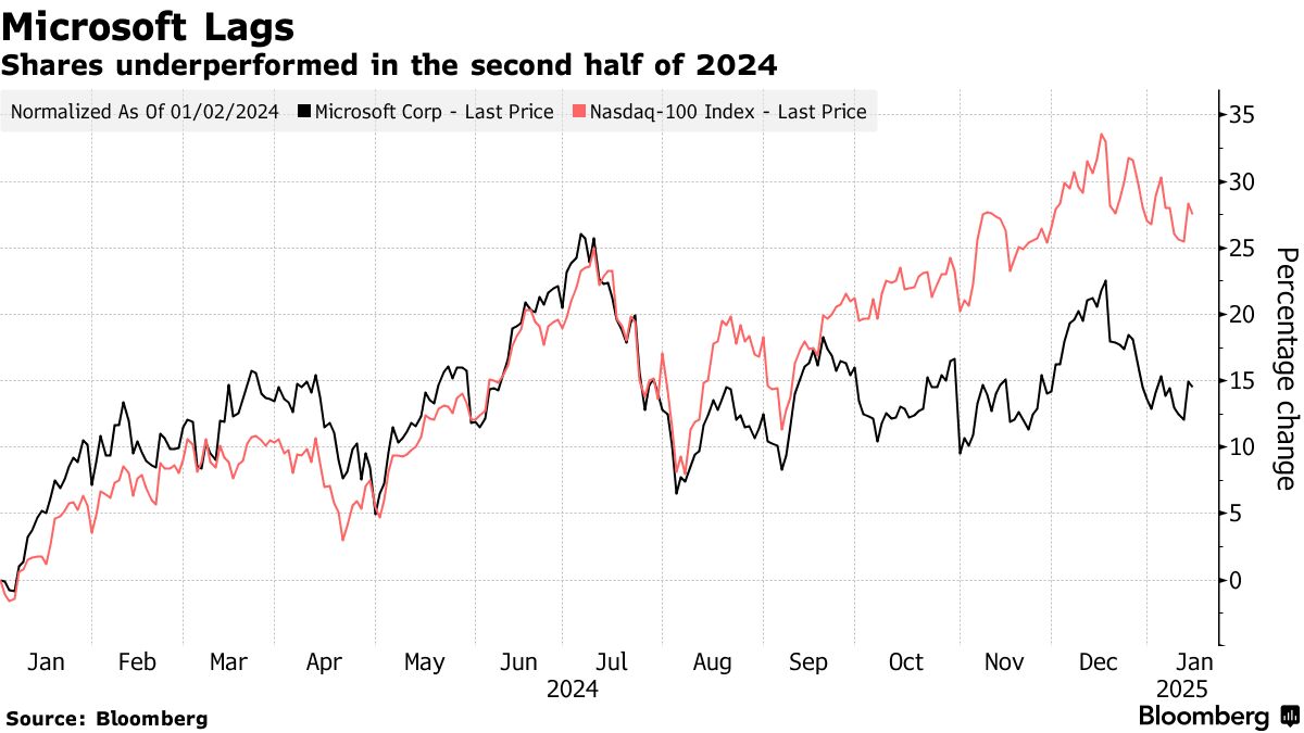 “市场正在意识到人工智能的采用将需要更长时间,且对短期回报的预期已经失去平衡,”Capwealth Advisors的首席投资官蒂姆·帕利亚拉表示。“虽然微软确实在推动人工智能,但它必须在同时有巨大的资本支出计划和股票按历史标准完全估值的情况下证明这个概念。”