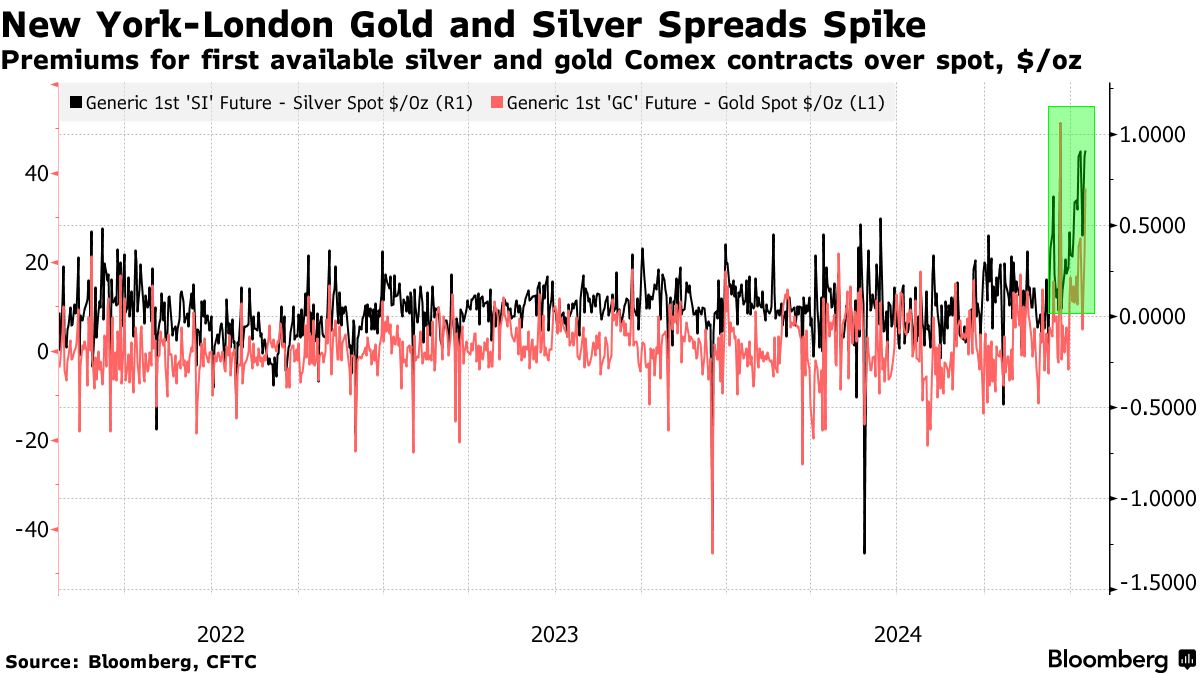 当选总统唐纳德·特朗普可能会实施普遍进口关税的风险正在导致全球黄金市场的新动荡,伦敦一个备受关注的黄金需求晴雨表达到了历史新高。