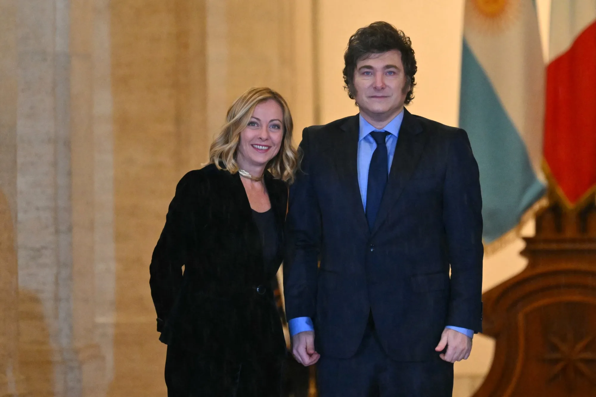 乔治亚·梅洛尼在罗马欢迎阿根廷总统哈维尔·米莱。摄影师:安德烈亚斯·索拉罗/法新社/盖蒂图片社在全球范围内,宣扬唯一合法权力直接来自人民的观点的政党和领导人——并且认为腐败、脱离现实的精英正在阻碍这种民意——正在上升。